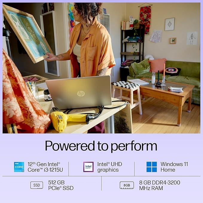 HP 15, 12th Gen Intel Core i3-1215U Laptop (8GB RAM, 512GB SSD) 15.6″/39.62cm, FHD, Win 11, MS Office 2021, Silver, 1.59Kg, Dual Speakers, FD0061TU