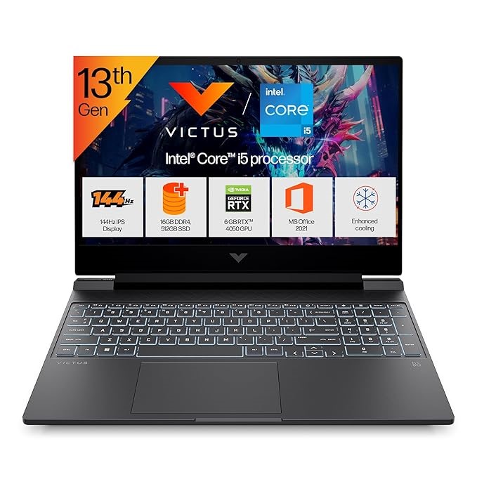 HP Victus, 13th Gen Intel Core i5-13420H, 6GB RTX 4050 (16GB DDR4, 512GB SSD) FHD, 144Hz, IPS, 15.6″/39.6cm, Win11, Office21, Mica Silver,2.3kg, fa2701tx, Backlit,Enhanced Cooling Gaming Laptop